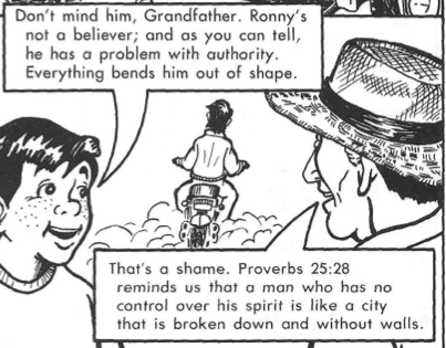 These are of course just a few examples of many of propaganda in their comic strips they put in their textbooks. When Christians say they want to include the Bible, Bible stories and introduce children to characters in those stories, they mean they want to insert their morals and beliefs into the curriculum and this is a good example of how they have done this already.