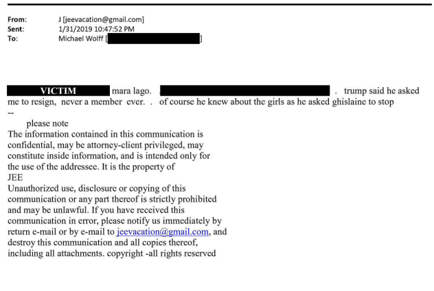 Emails suggesting that Trump spent private time with a well known victim at Epstein’s house and “knew about the girls”: