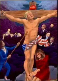 Donald J Trump has continuely compared himself to Jesus by calling himself the Chosen One, using images that depict him as Jesus, and by directly comparing the way he sees himself being “persecuted” to those that persecuted and betrayed Jesus Christ. Not only that but his allys and sarrogotes have also compared him to Jesus on many occasions. That is the text book definition of blashepmy; the unforgiveable sin.